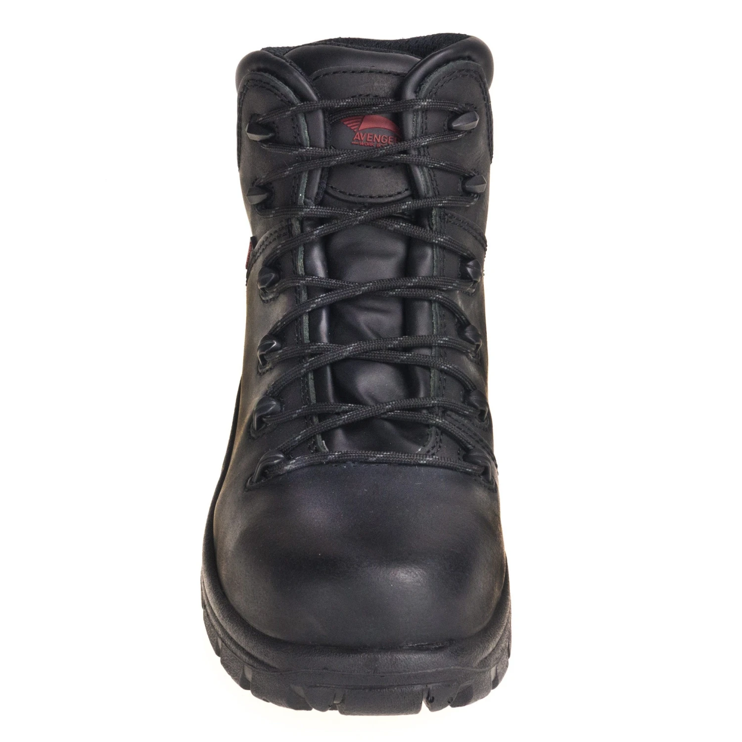 This is one pair of work boots that’s not messing around – especially not when it comes to your safety, comfort, or your ability to get the job done. When you’re headed out to a hazardous job site or just a plain old long day on your feet, you should be doing it in the kind of men’s footwear that’s as ready for the task at hand as you are. Now you can, thanks to the ~Avenger A7223 Men’s Black Puncture-Resistant Waterproof Composite Toe EH Hiker Boots. With safety toe caps, waterproof protection, rugged leather exteriors, and no exposed metal to meet scratch-resistant requirements at your workplace, you’ll be more than set when you’re wearing these Avenger boots.