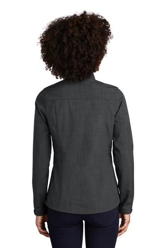 Gear up for the office or a weekend adventure in this soft shell that offers water protection and breathability thanks to its 3K/3K fabric. 3000MM fabric water protection rating. 3000G/M2 fabric breathability rating. Reverse coil zippers, front zippered pockets, adjustable tab cuffs with hook and loop closures and an open hem. Princess seams. Embroidered Eddie Bauer contrast logo on right hem. Made of a 100% polyester woven shell bonded to a water-resistant laminated film insert and a 100% polyester fleece.