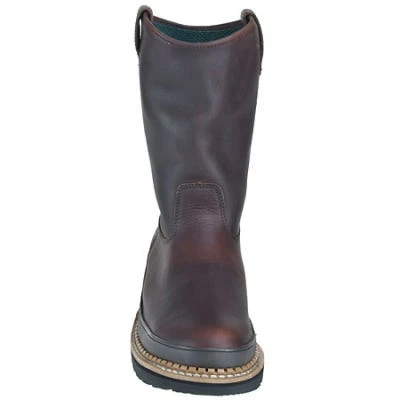These Georgia wellingtons have Goodyear Welt construction, which makes the soles extra durable and tough. In Goodyear Welt construction, the upper fabric, lining and sole are sewn together for added durability. A welt is then stitched to the boot upper, insole and lining in one single operation. The outsole is then stitched to the bottom of the welt. These Georgia wellington work boots are made to last, and as long as the uppers remain sound, it makes sense to re-sole a pair of worn welted boots by sewing new soles to the existing welt. Your work boots could easily last you even longer.