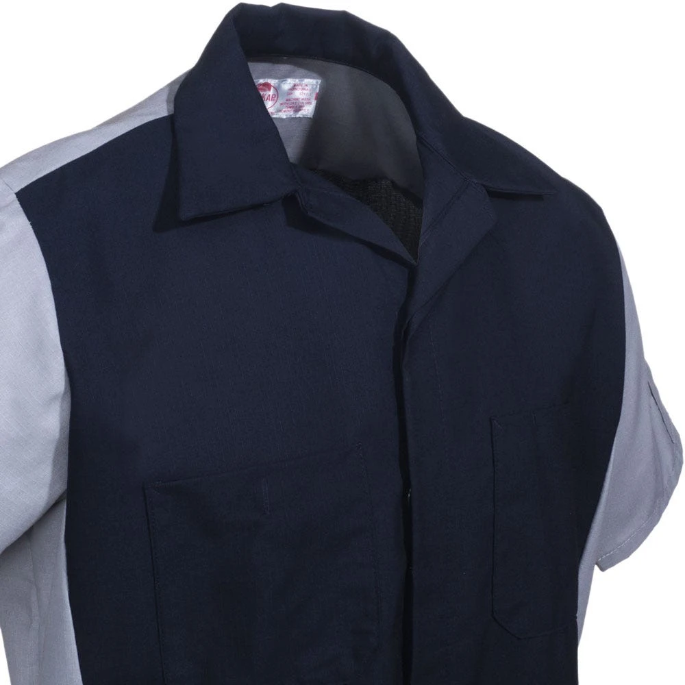 You can walk around wearing a grease-covered, ripped, sweaty, dirty work shirt if you want, but you can also wear this ~Red Kap SY20 NG Men’s Navy Blue and Grey Ripstop Cotton Blend Short Sleeve Crew Shirt and look like a professional while you stay comfortable.