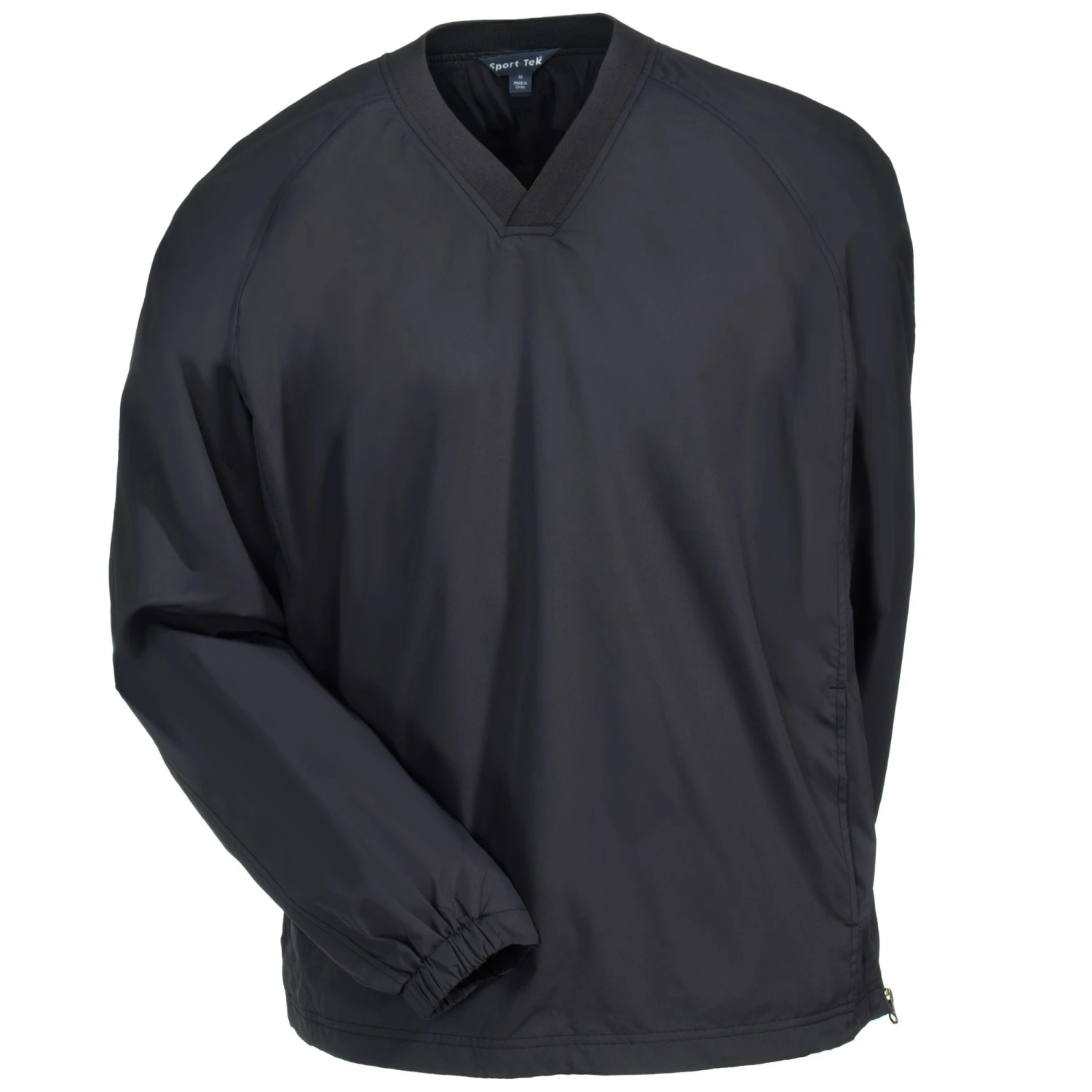 So whether you’re on the basketball team or the sales team, this professional, crisp and clean looking black v-neck wind shirt is the perfect addition to your line up. Perfect for team travel, warm-ups, or for those professionals who are always on the go and often outside, this men’s workwear will keep you warm while also looking great. Let us custom embroider your team or company logo for you, and you will find that this Sport-Tek Men’s JST72 BLK Raglan Black V Neck Wind Shirt from Working Person’s Store is the best investment you’ve made. Sport-Tek knows how to deliver affordable high quality, and this men’s pullover definitely proves it. Available in sizes XS-6XL, there’s a perfect fit for everyone.