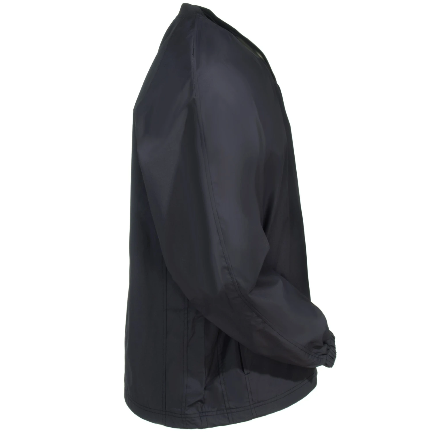 The 100% polyester shell is a soft wind shirt feel. The quiet hand is a smooth, modern finish on your traditional wind shirt. The jersey lining is soft and comfortable inside this team pullover, making sure everybody stays super cozy. Mesh insets are added at the gussets for extra breathability to keep you comfortable in warm and cool conditions. The rib knit collar on the men’s v-neck will hold its shape use after use and offers a flexible, comfortable fit.