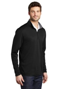 Port Authority Shirts: Men’s K584 BSTG Black Steel Grey Silk Touch Performance 1/4-Zip Shirt