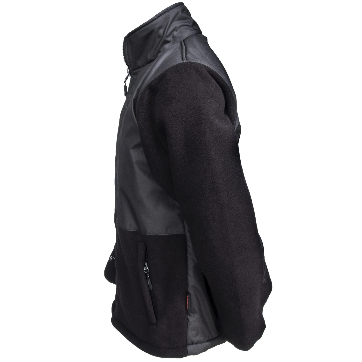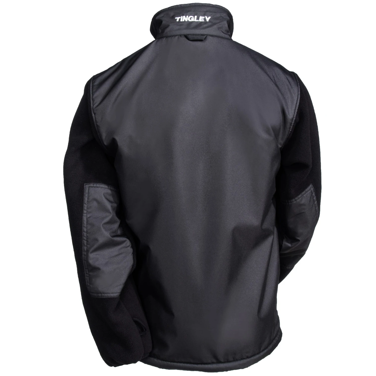 The exterior body features a fleece collar, a band of fleece that encircles the lower portion of the Tingley black jacket front and back, and arms substantially constructed of fleece. And it has blocks of polyester on the chest, back, and backs of the arm. You get the warmth and softness of fleece plus the lightweight durability of breathable denier polyester in key places.